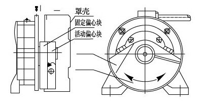 振動器激振力大小正比于偏心塊的質量,偏心距和角速度的平方。振動器每端出軸均有一個固定偏心塊和一個活動偏心塊、改變活動偏心塊與固定偏心塊之間的夾角即改變偏心質量,可得到不同的激振 力。電機激振力的大小等于固定偏心塊上的振動力標牌讀數乘以2/1000。電機出廠時固定偏心塊和活動偏心塊完全重合,激振力為額定激振力。