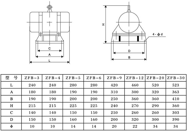 注:ZFB系列倉壁振動器正確使用方法:頻繁的啟動,短時間使用(一般設定振打時間30秒左右)